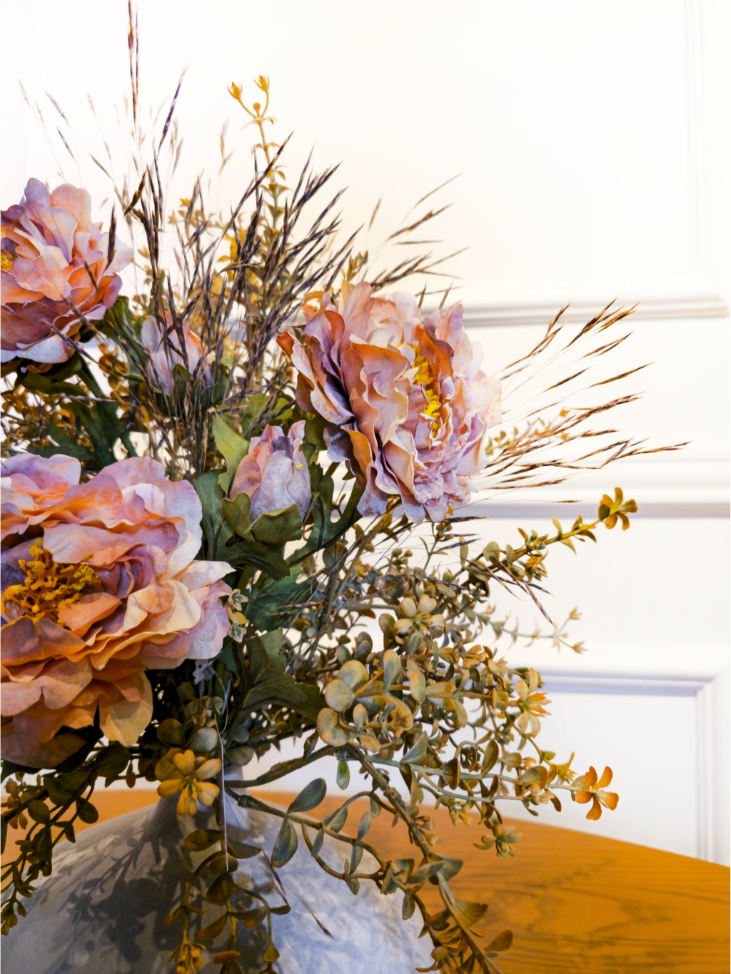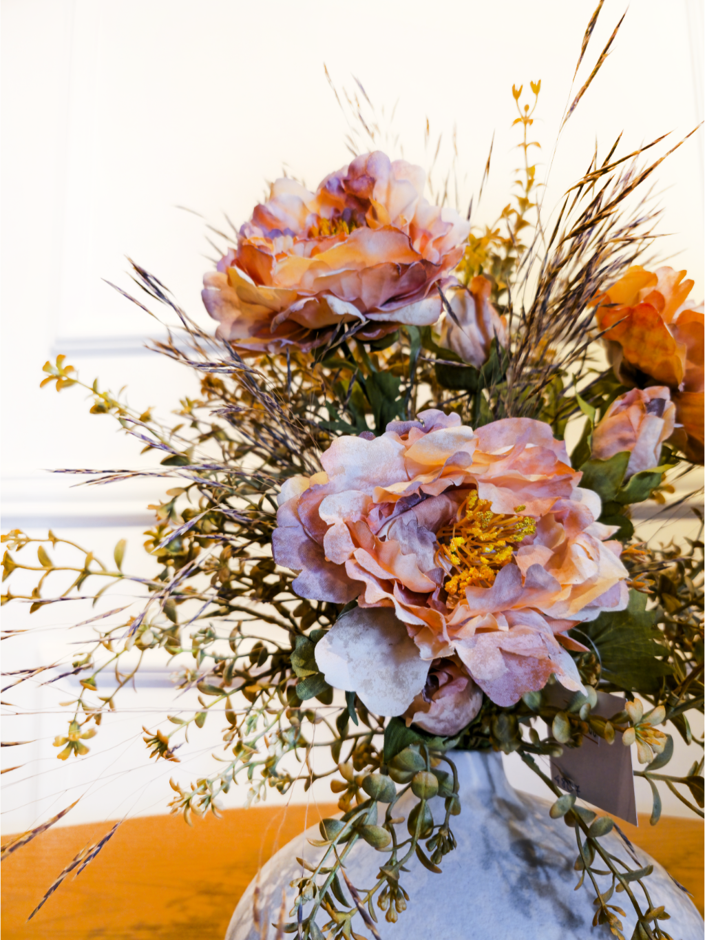 • Composição: Arranjo exclusivo da Coleção de Outono Bazar das Flores, composto por elementos permanentes de alto padrão (com toque real) e paleta em tons outonados.