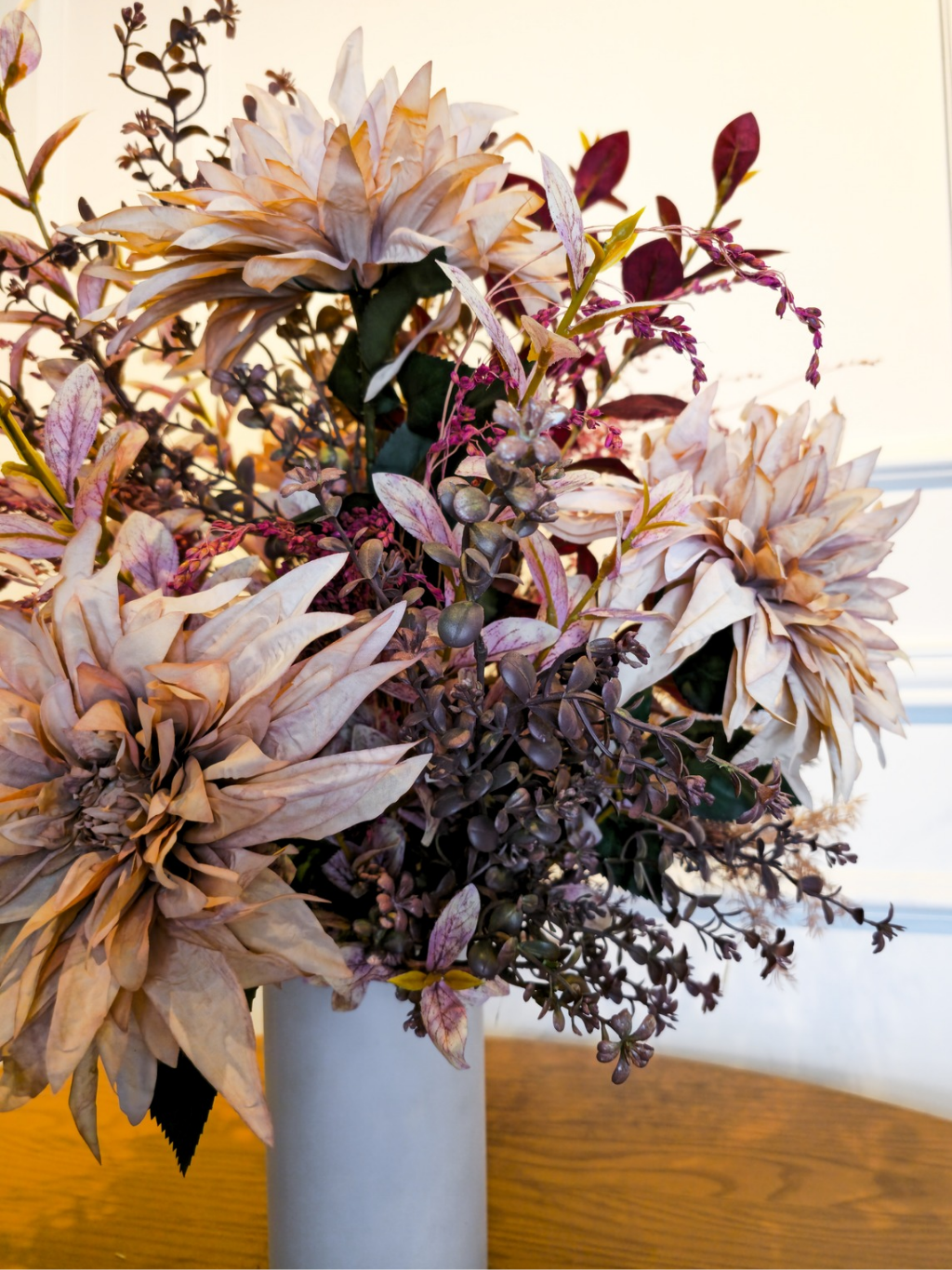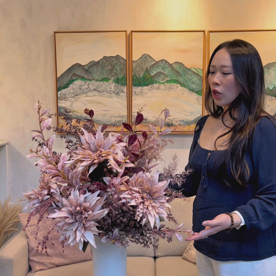 O Arranjo Permanente Margot traz a essência acolhedora do outono para dentro do seu lar. Com uma curadoria de folhagens e elementos em tons quentes e terrosos, esta peça é o equilíbrio perfeito entre a sofisticação moderna e a sensação de refúgio. É o toque final ideal para quem deseja uma decoração que transmita conforto e personalidade.
