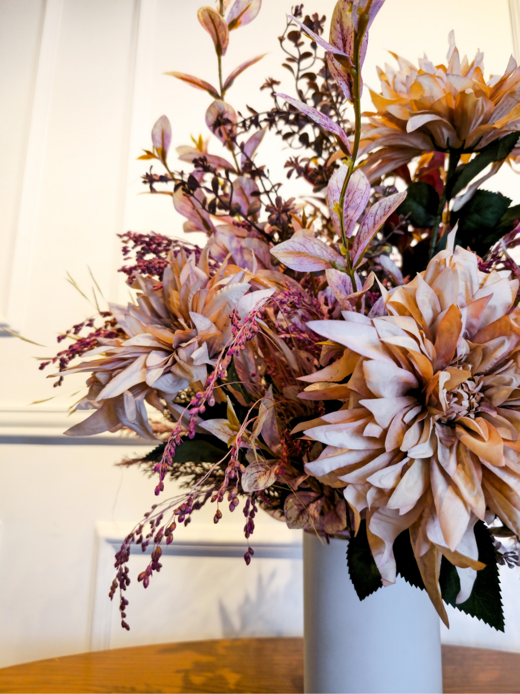 • Composição: Arranjo exclusivo da Coleção de Outono Bazar das Flores, composto por elementos permanentes de alto padrão (com toque real) e paleta em tons outonados.
