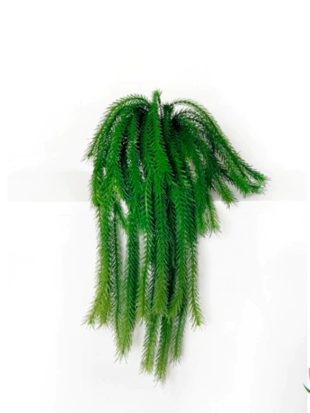 Dica de Uso: O ideal é que o arranjo fique em um lugar alto e de destaque no ambiente, como em prateleiras altas. Quanto mais alta a prateleira, mais o efeito cascata da folhagem de rabo de macaco demonstrará sua beleza e realçará o espaço! Também pode ser utilizado dentro de outros vasos.